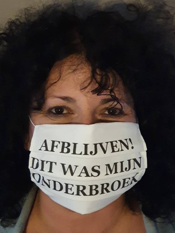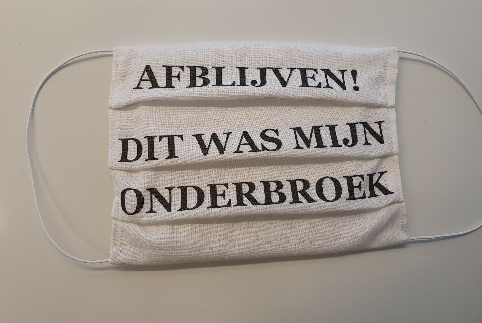 Mondkapje met eigen tekst, 100% katoen wasbaar op 40 graden en strijken op de katoenstand. 1 maat voor volwassenen