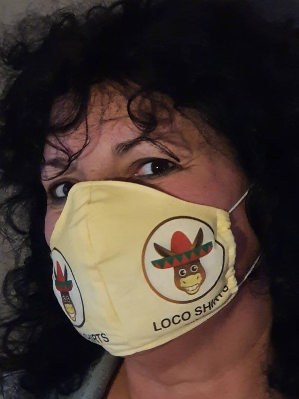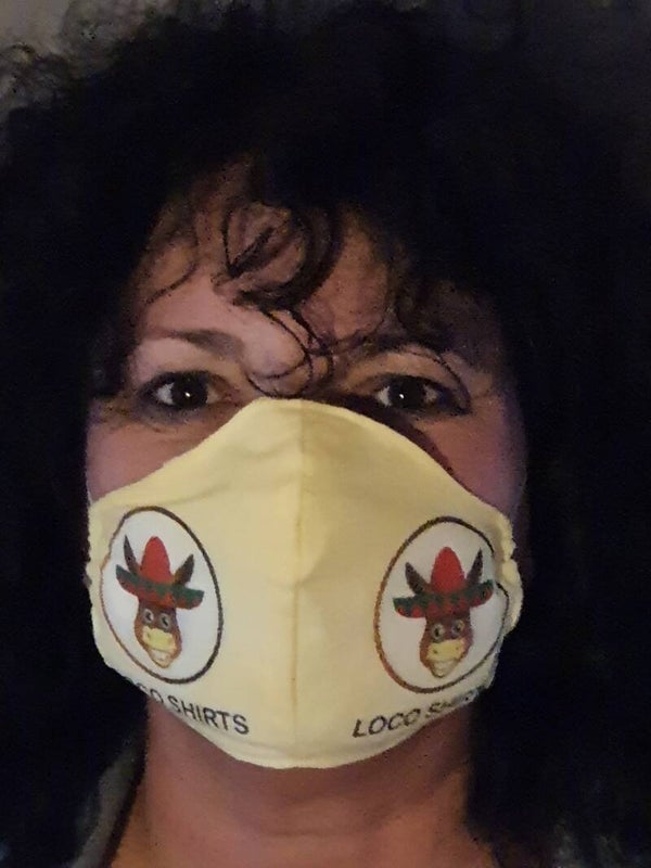 mondkapje ronde bovenkant met eigen logo, 100% katoen.Wasbaar op 40 graden en strijken op de katoenstand. 3laags inclusief filter ingenaaid.
