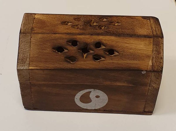 wierook kegel doosje van hout met doosje patchouli kegels